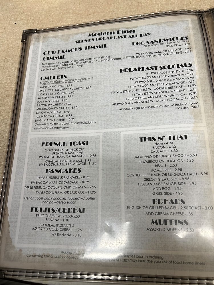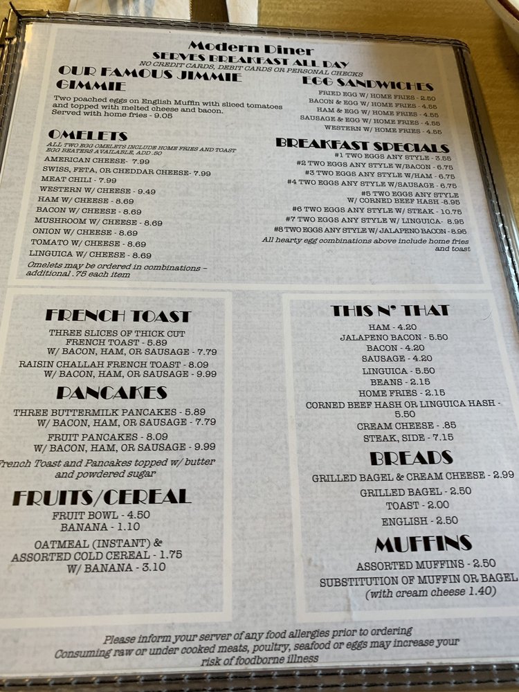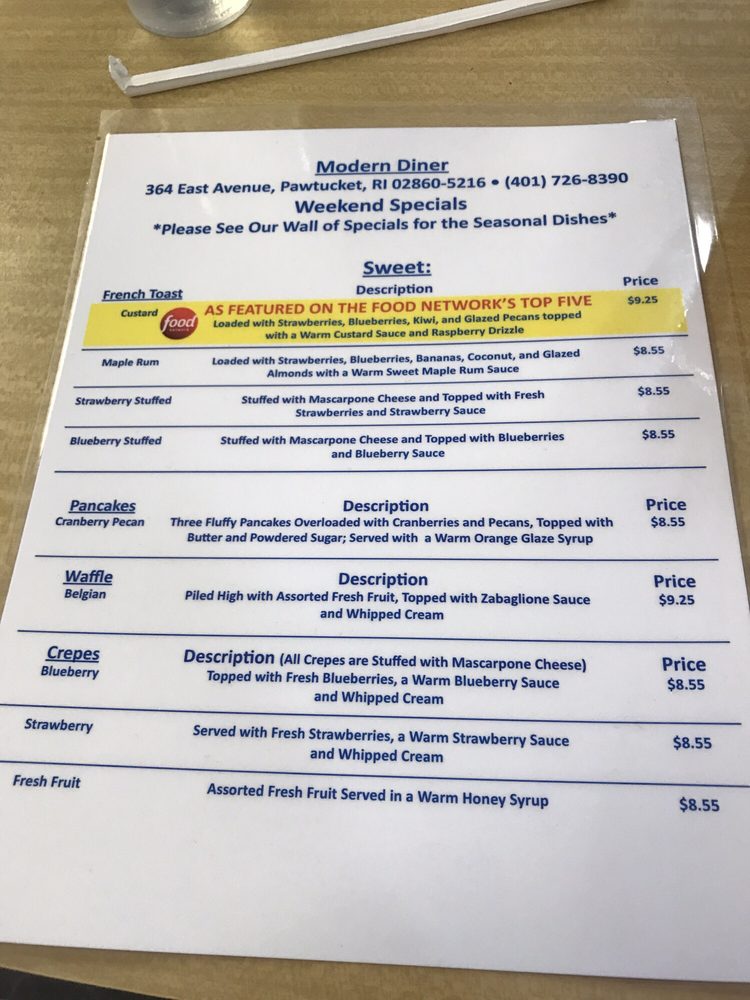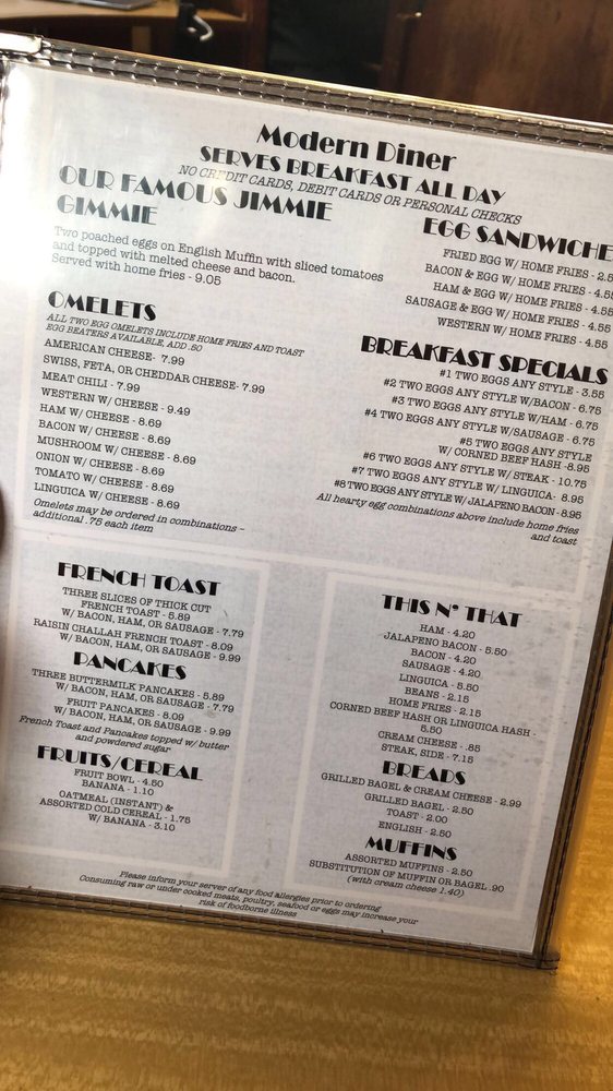 Introducing Modern Diner, a cozy spot in Pawtucket, RI that offers a variety of delicious breakfast and brunch options. From the decadent Lobster Benedict to the flavorful Chicken Livers, there is something for everyone to enjoy. The menu also features unique dishes like the Cranberry Apple French Toast and Chourico Special. The relaxed atmosphere, outdoor seating, and friendly staff make it a great place to gather with friends and family. Modern Diner also caters to different dietary preferences with limited vegetarian options available. Conveniently located with parking, Wi-Fi, and the option for takeout, Modern Diner is a great choice for a satisfying meal any time of day.